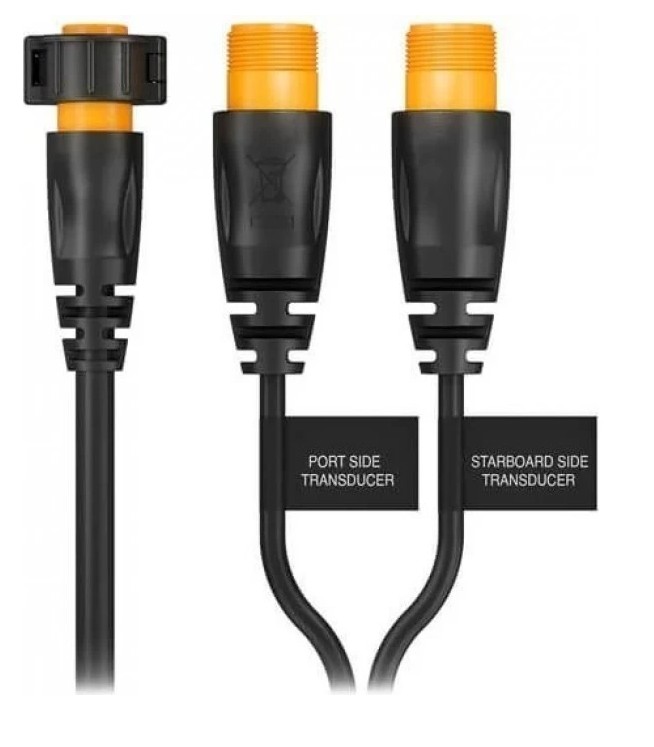 Подключите пару датчиков, установленных на корпусе или транце, по левому / правому борту к эхолоту с помощью этого 12-контактного Y-образного кабеля. Этот кабель позволяет использовать два разных датчика для получения изображений SideVü слева и справа, чтобы избежать затенения нижней части двигателя или киля / корпуса. Правый датчик используется для обычных изображений, ClearVü и правосторонний-SideVü, а также температуры воды и идентификатора датчика. Левосторонний порт кабеля используется для изображений левой стороны SideVü. Совместим со всеми 12-контактными преобразователями GT.